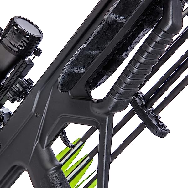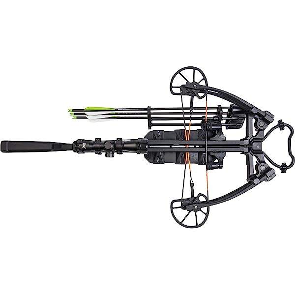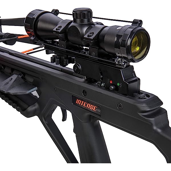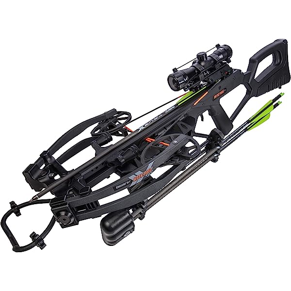 • Bear X Intense CD Ready to Shoot Crossbow Package with Scope, Quiver, Bolts, Cocking Rope, and Wax, Stoke Finish, Black