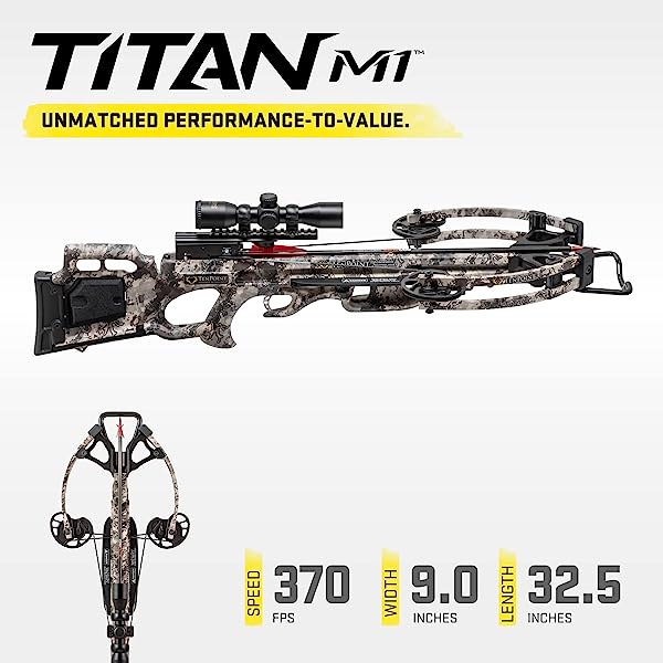 • TenPoint Titan M1 Crossbow, TrueTimber Viper - 370 FPS - Equipped with Lighted 3X Pro-View Scope - Forward-Draw Design Rope-Sled Crossbow Package