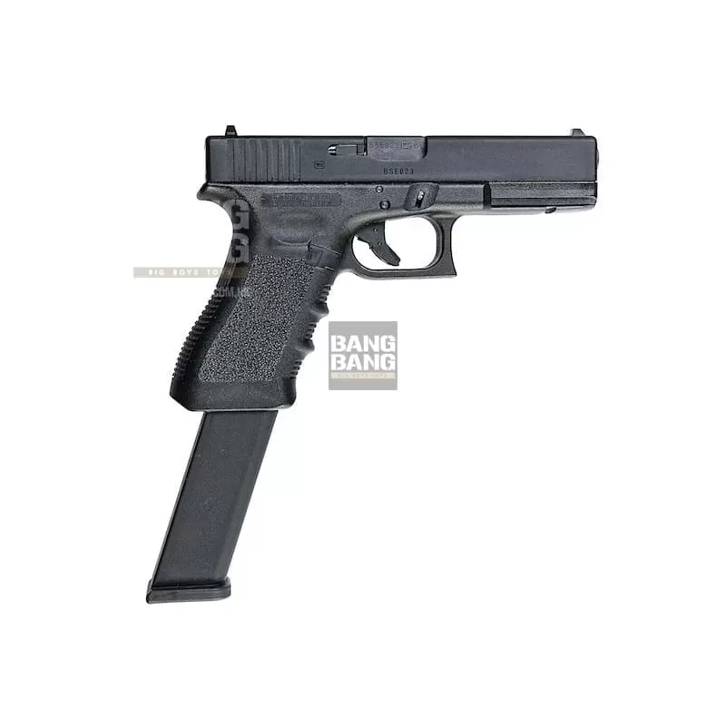 The Umarex Glock 18c is the long awaited, fully licensed auto pistol many users have been waiting for. The pistol features a 50rd magazine which is compatible with other Umarex Glock pistols. This particular Glock 18 uses the same recoil spring system found in the Glock 17 Gen 4 pistol offering added durability and stability when shooting full auto. The dual recoil system makes this gun handle recoil extremely well and allows for added accuracy.