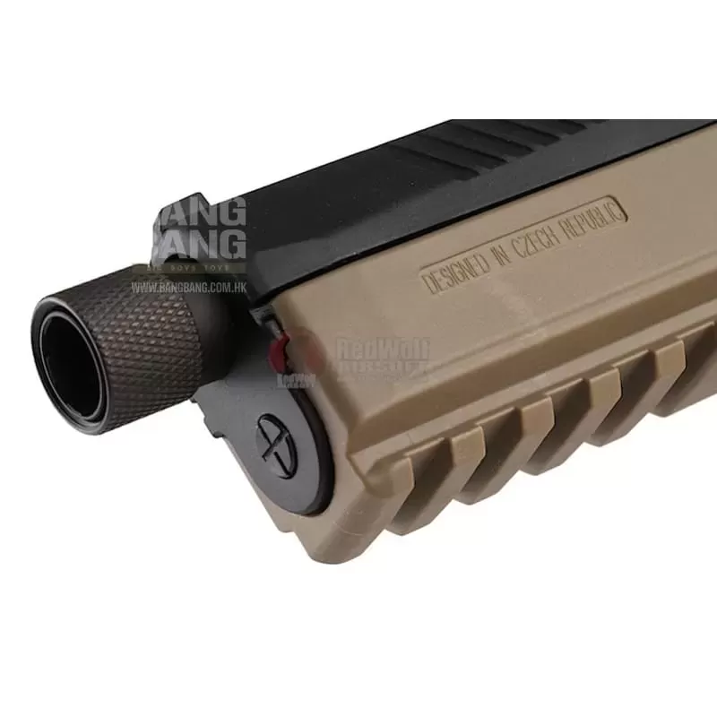 The CO2 version cycles very smoothly as it clocks in at around 370 fps, which is a little hot for CQB because the slide doesn't weight all that much so we exercise the fact that this CO2 version be used for outdoor skirmishes. It comes with its own 24 Round magazine made specifically for the Duty. There is also a GAS version which clocks in at 340 fps but the GAS magazine isn't compatible with the CO2 version OR the previous CZ-75 so make sure you get the correct magazine!