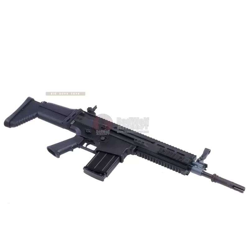 prviously in two tone tan color now in the all new black colour scheme, the upper receiver is made in metal with a anodized finish and paired with a weight lightening polymer lower receiver. Inside is a gas blowback system that gives a better kick than the other SCAR-H GBBs out there in the market. .