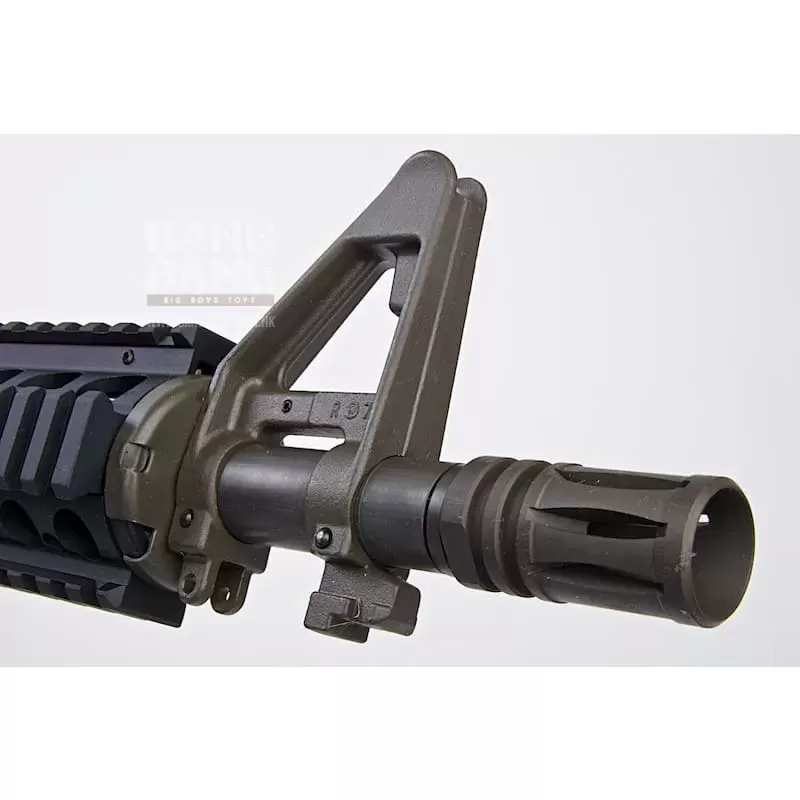 Known for its gas efficient magazines and excellent GBBR platforms, GHK is admittedly late to the GBBR M4 bandwagon, but it stands apart from the rest when you compare the performance and external quality to its competitors. With a steel bolt, barrel and control group, and aluminum receiver and CNC RIS, the material usage in the construction of this GBBR is entirely accurate to the weapon it aims to replicate. The steel parts exhibit a lighter grey than the treated aluminum and give the GHK M4 RAS an excellent heft and balance. Durability will not be a problem with the quality construction and build quality exhibited by GHK on this replica. Due to the steel bolt and GHK's modified negative pressure floating valve blowback system, when coupled with GHK V2 GBBR M4 magazines, the operation is amazingly reliable while performance and power consistency are excellent. If you've fired a GHK G5 and liked the kick on that, the kick on this GBBR is comparable, even given the increased weight of the body due to a heavier steel bolt that is still snappy and responsive on Top Gas. The Hop-Up on this replica is easily accessible as long as you have a removable bottom rail like the one it comes with. The dial adjust is accurate and stiff enough to hold its adjustment even given the immense recoil of the platform. Speaking of recoil, be sure that any optic you mount on this is of decent quality with ample shock resistance to prevent zero shift. See out article review on 'The Price of Accuracy' in the REVIEWS section for more on this. The GHK M4 RAS GBBR is an excellent performance gas blowback rifle replica that looks the part and performs better and with more reliability than probably any other GBB M4 available on the market. GHK took their mastery of gas efficiency and professional understanding of GBB mechanics and have produced a real nominee for any 'Best GBBR award'.