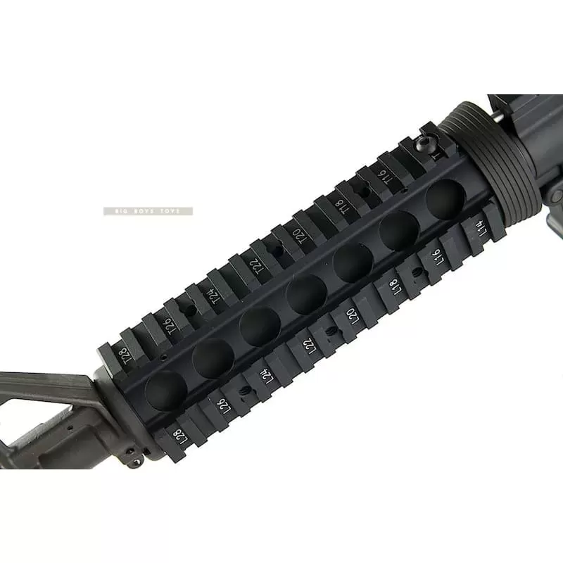 With a steel bolt, barrel and control group, and aluminum receiver and CNC RIS, the material usage in the construction of this GBBR is entirely accurate to the weapon it aims to replicate. The steel parts exhibit a lighter grey than the treated aluminum and give the GHK M4 RAS an excellent heft and balance. Durability will not be a problem with the quality construction and build quality exhibited by GHK on this replica.