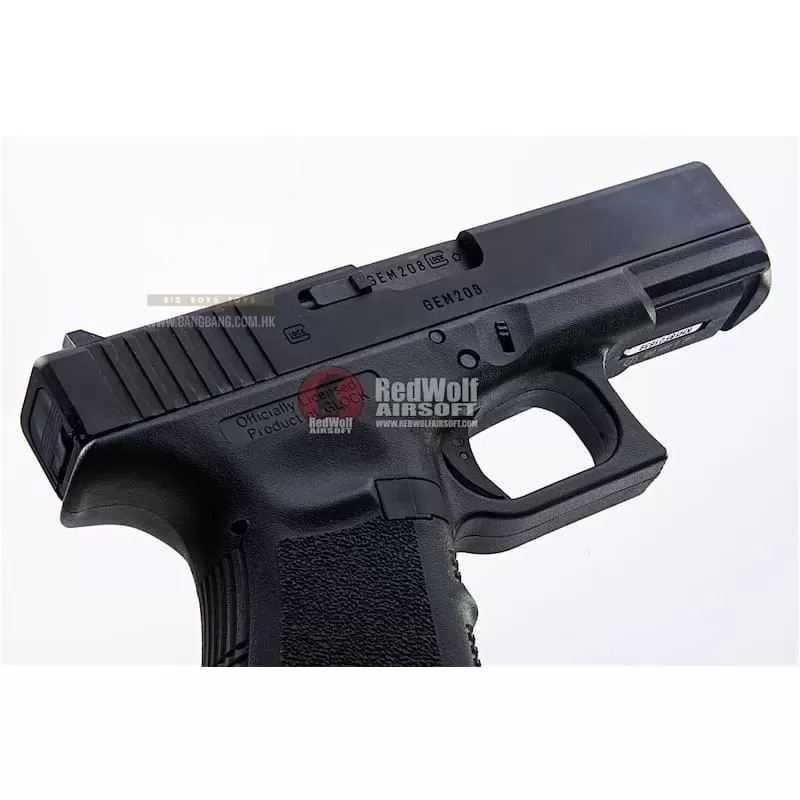 The airsoft version faithfully replicas the same features externally. The pistol works on regular green as and fires with a crisp, fast cycle. The added benefit of this being a licensed product is that it can also work with many other accessories designed for Glocks such as weapon lights, holsters, etc. without having to worry if your pistol will be to spec.