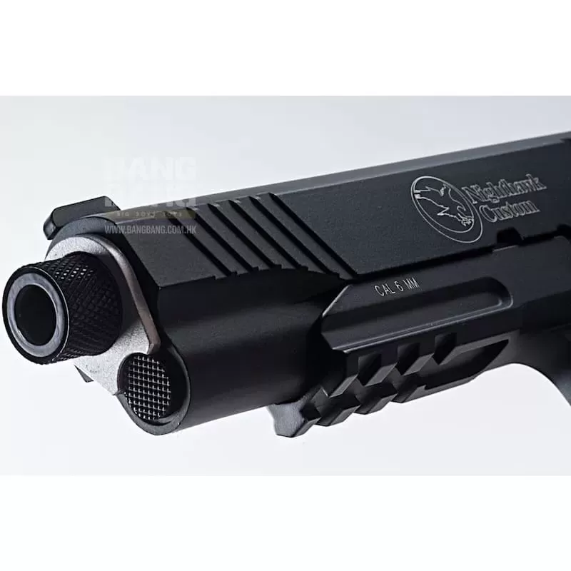 A lot has changed since the original RWA Nighthawk Recon as the CO2 COVERT OPS version steps it up a notch. The most obvious part is the suppressor that comes with it that sits on a 14mm CCW thread. It also features Nighthawk Custom gator grips which is far more comfortable to hold. The trigger now has a slight groove making it a little lighter than its older brother, the Recon. The outer barrel is much lighter and is now chrome which is very beautiful against the black.This product has a RWA Floating Valve for Nighthawk / SPS / KWC 1911 installed with another spare in the box. It allows more reliable shot-to-shot power (FPS) and reduces your FPS down to a stable 290 - 310 fps which is more CQB friendly. It also offers an accessory rail system for attaching flashlights and lasers for tactical use. This will most certainly make you feel like a spy or an agent as you walk around CQB arenas taking your shots from the dark. It does replicate a real single stack 1911 with the same dimensions, functional features, field stripping and shooting mechanics. It is designed to deliver solid performance at an affordable price. Removable and re-loadable full size 17 round magazine means you can also practice fast reloads using the realistic slide lock feature.