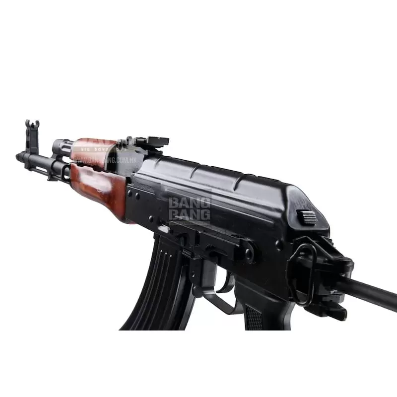 Full steel and wood construction, this new GHK AKM is hands down the best gas blowback AK on the market today as of this writing. The blowback performance is solid and quite impressive.With stock folded down, the 91cm / 36 inch rifle becomes a more compact 70cm / 27.5 inches. The left side plate allows the aftermarket addition of Soviet style AK / SVD type optics.