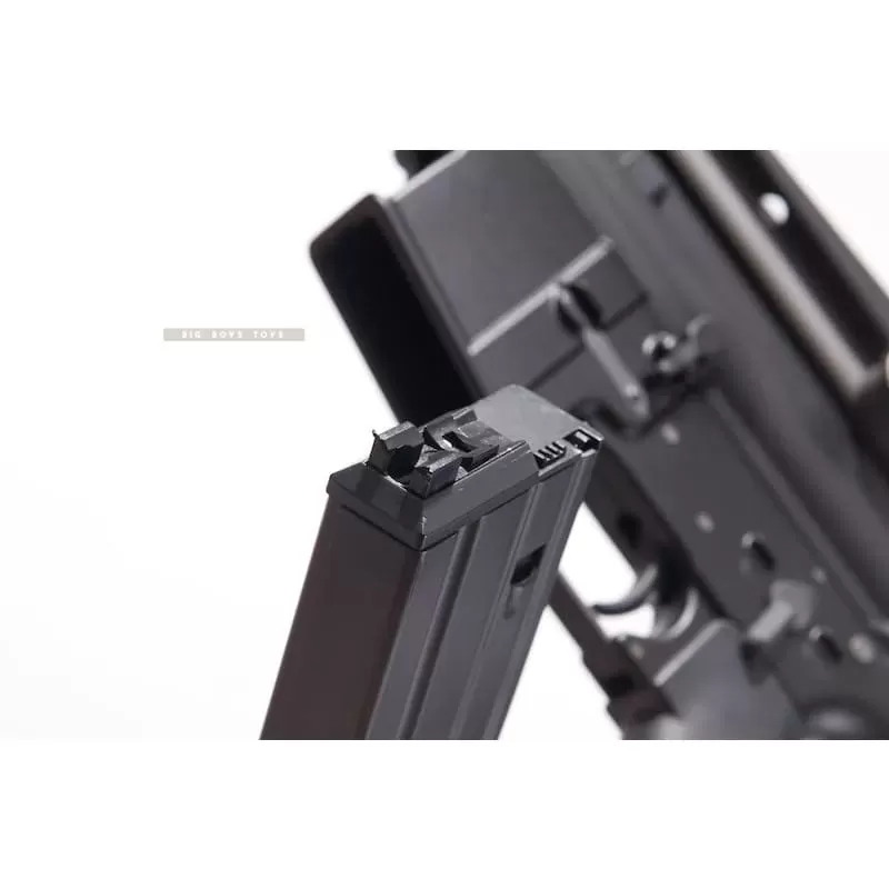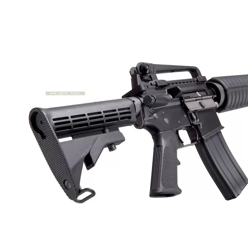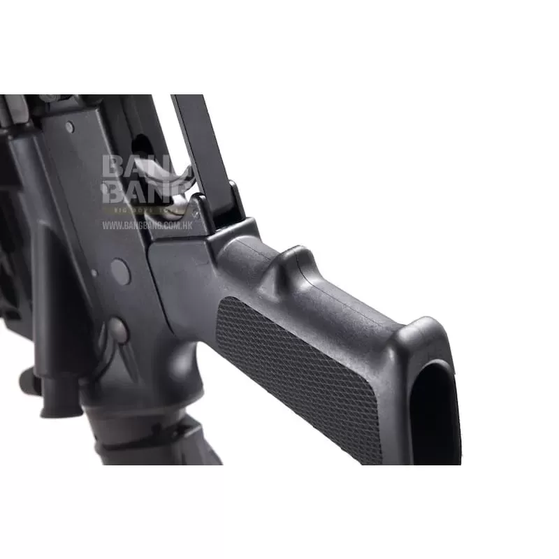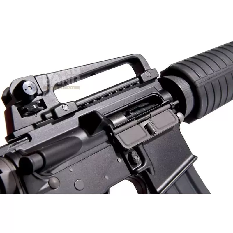 W full metal and polymer AR type weapon, it feels very solid and robust; a fairly common factor on gas weapons, unlike AEGs, as their bodies are built to contain actually mechanical forces and are not just a basket to hold a gearbox. Besides the realistic action and real cap magazine, it also field strips like the real thing with self-retaining receiver pins (front pivot) and a removable bolt carrier group, buffer and spring.