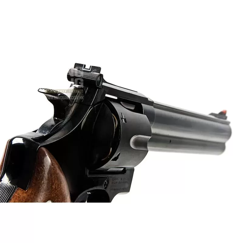 Internally the gun stores its BBs in the cylinder without using shells. The M29 features a 9 round capacity and fixed hop-up for a fantastic shooting experience.