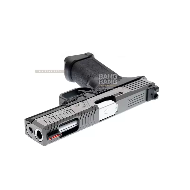The RWA Agency Arms EXA Pistol is the first Gas Airsoft Pistol that RWA has ever released under the combined Agency Arms & Lone Wolf Distribution licenses. Most notably, this pistol is the same one used in exactly this configuration by Agency Arms Asset Paul Vandunk! Upon first glance, the EXA boasts Agency Arms' 'EXA Hybrid slide cut', mid-line fluted outer barrel, and blacked-out inner barrel for added realism. Rather unique to the EXA's look is how the slide and outer barrel sit flush with each other, seldom seen on other pistols! It also includes Lone Wolf's signature Timberwolf frame custom made to Agency's specifications. Out of the box, the pistol comes pre-installed with a fiber optic front sight and blackout rear sight, allowing for a cleaner sight picture which gives you the visual consistency akin to that of a standard red dot optic.