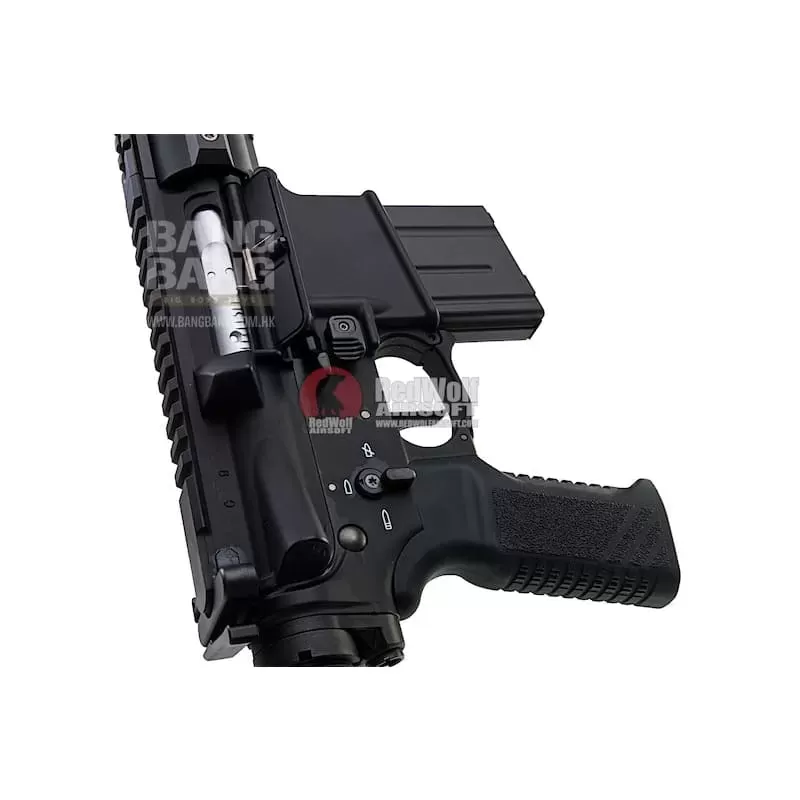 Uniquely modern AR15 design. Fully ambidextrous controls. M-LOK compatible rail. Good for 380fps. Cerakoted upper and lower receivers. Comes with a 20 round magazine. Utilizes the Tokyo Marui ZET System.