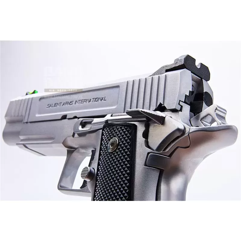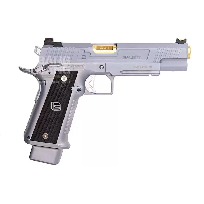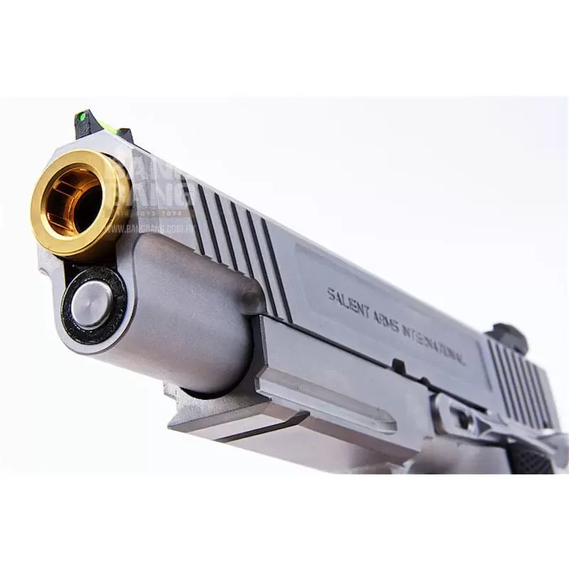 Utilizing the Tokyo Marui Hi-Capa gas system, the Salient Arms / EMG DS pistol can be upgraded from a wide pool of available parts and components, ensuring easy repair and maintenance and years of reliable service. Features: