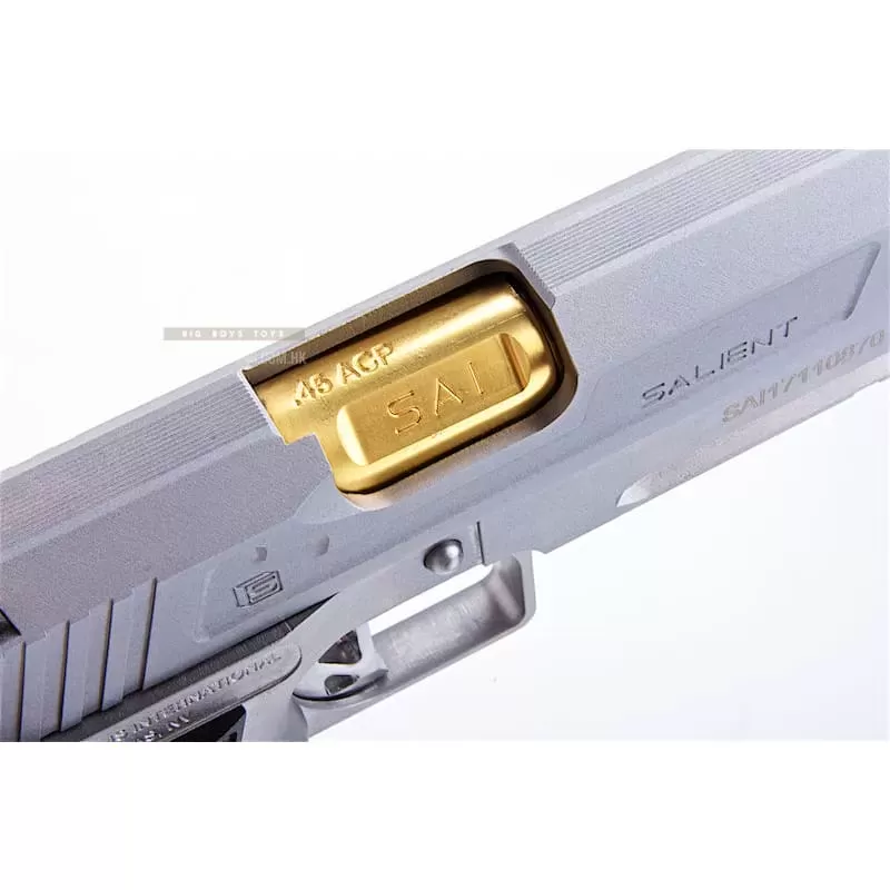 EMG has extended their collaboration with the Salient Arms and is proud to release the Salient Arms x EMG DS 2011 collaboration Airsoft Training pistol. Manufactured with an eye to detail the EMG SAI DS 2011 is CNC machined from aluminum alloy and features all of the trademarks of a Salient Arms pistol, incuding: a titanium nitride style barrel, competition style sights with fiber optic front insert, ambidextrous safety and, of course, stamped Salient Arms International rollmarks.